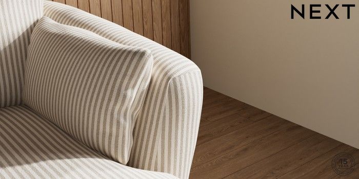 7.3.1 Buy Orlo Relaxed Sit Medium Sofa Chaise - Right Hand Chenille Stripe Natural Retro Tapered - Dark Brown from the Next UK online shop Click here to use our accessible website