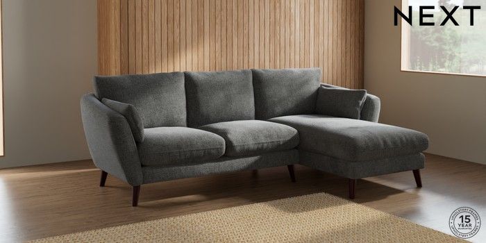 6.12.1 Buy Orlo Relaxed Sit Medium Sofa Chaise - Right Hand Chunky Chenille Dark Grey Retro Tapered - Dark Brown from the Next UK online shop Click here to use our accessible website
