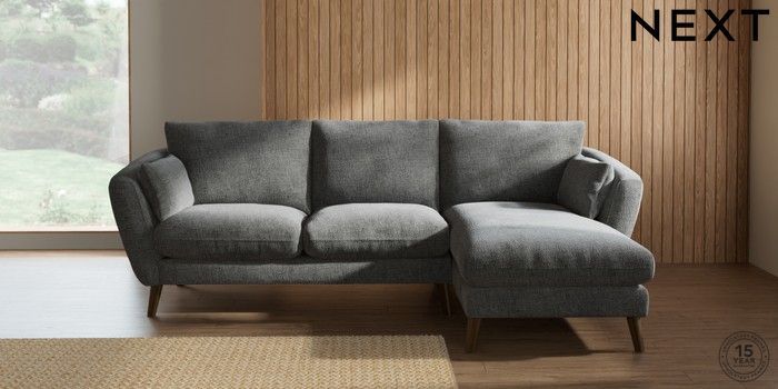 6.12.1 Buy Orlo Relaxed Sit Medium Sofa Chaise - Right Hand Chunky Chenille Dark Grey Retro Tapered - Mid from the Next UK online shop Click here to use our accessible website