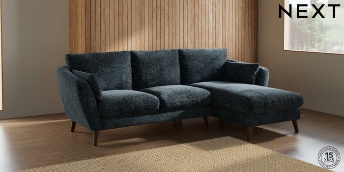 6.12.1 Buy Orlo Relaxed Sit Medium Sofa Chaise - Right Hand Chunky Chenille Dark Navy Blue Retro Tapered - Mid from the Next UK online shop Click here to use our accessible website