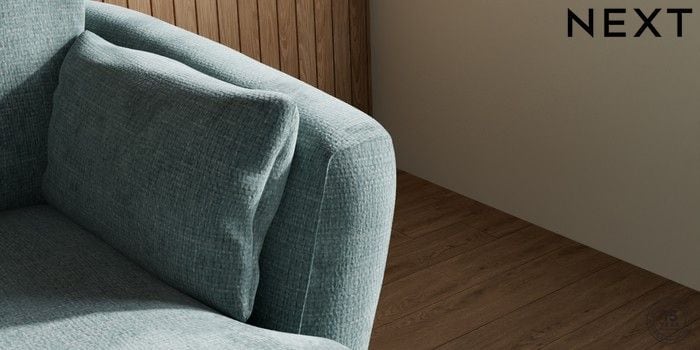 6.12.1 Buy Orlo Relaxed Sit Medium Sofa Chaise - Right Hand Chunky Chenille Light Teal Green Retro Tapered - Dark Brown from the Next UK online shop Click here to use our accessible website