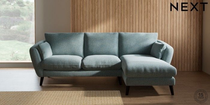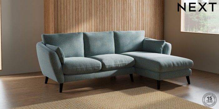 6.12.1 Buy Orlo Relaxed Sit Medium Sofa Chaise - Right Hand Chunky Marl Mid Blue Retro Tapered - Dark from the Next UK online shop Click here to use our accessible website