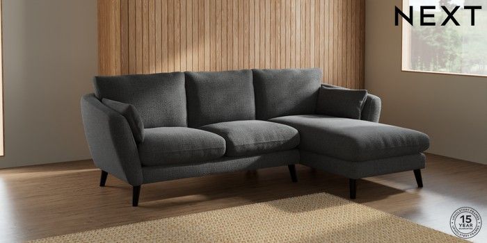 6.12.1 Buy Orlo Relaxed Sit Medium Sofa Chaise - Right Hand Chunky Texture Dark Grey Retro Tapered - Dark from the Next UK online shop Click here to use our accessible website