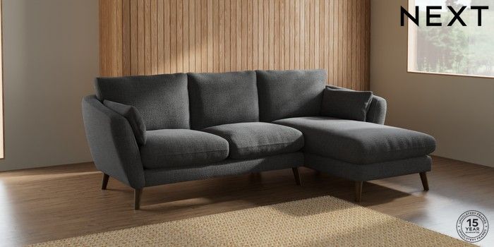 6.12.1 Buy Orlo Relaxed Sit Medium Sofa Chaise - Right Hand Chunky Texture Dark Grey Retro Tapered - Mid from the Next UK online shop Click here to use our accessible website