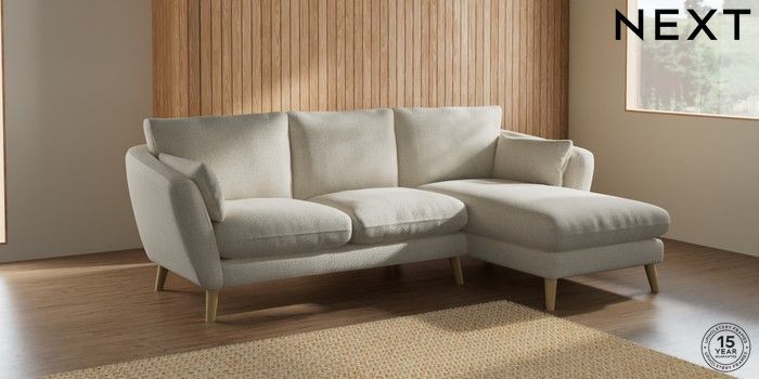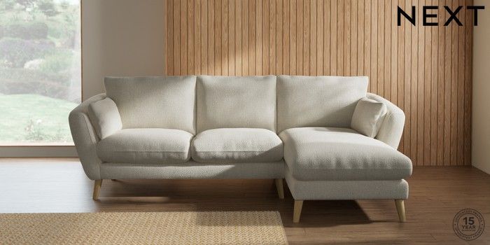 6.12.1 Buy Orlo Relaxed Sit Medium Sofa Chaise - Right Hand Chunky Texture Oyster Retro Tapered - Light from the Next UK online shop Click here to use our accessible website