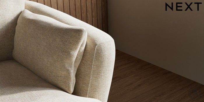 6.12.1 Buy Orlo Relaxed Sit Medium Sofa Chaise - Right Hand Chunky Weave Cream Retro Tapered - Dark Brown from the Next UK online shop Click here to use our accessible website