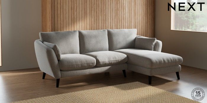 6.12.1 Buy Orlo Relaxed Sit Medium Sofa Chaise - Right Hand Chunky Weave Dove Grey Retro Tapered - Dark from the Next UK online shop Click here to use our accessible website
