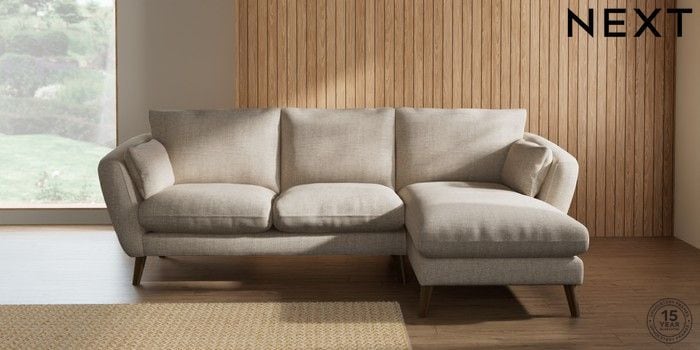 6.12.1 Buy Orlo Relaxed Sit Medium Sofa Chaise - Right Hand Chunky Weave Mid Natural Retro Tapered - Mid from the Next UK online shop Click here to use our accessible website