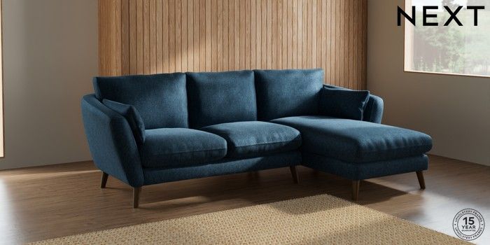 6.12.1 Buy Orlo Relaxed Sit Medium Sofa Chaise - Right Hand Cotswold Chenille Dark Blue Retro Tapered - Mid from the Next UK online shop Click here to use our accessible website