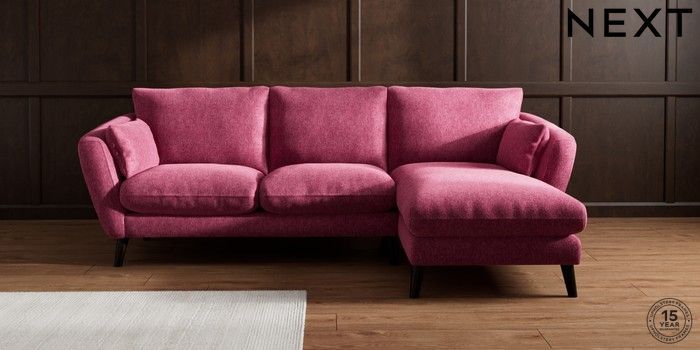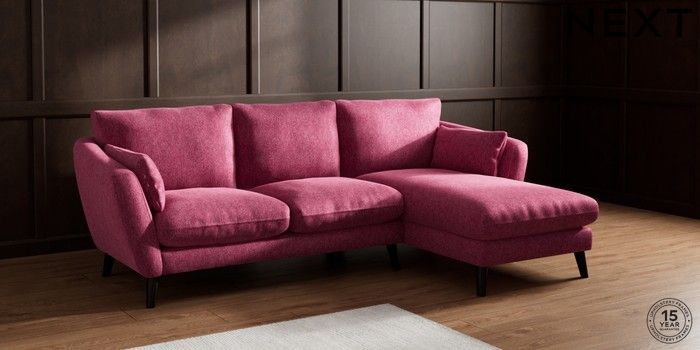 6.12.1 Buy Orlo Relaxed Sit Medium Sofa Chaise - Right Hand Cotswold Chenille Dark Raspberry Pink Retro Tapered - Dark from the Next UK online shop Click here to use our accessible website