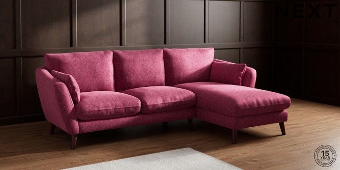 6.12.1 Buy Orlo Relaxed Sit Medium Sofa Chaise - Right Hand Cotswold Chenille Dark Raspberry Pink Retro Tapered - Dark Brown from the Next UK online shop Click here to use our accessible website