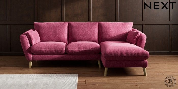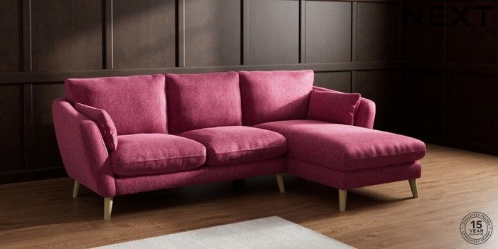 6.12.1 Buy Orlo Relaxed Sit Medium Sofa Chaise - Right Hand Cotswold Chenille Dark Raspberry Pink Retro Tapered - Light from the Next UK online shop Click here to use our accessible website