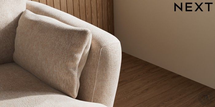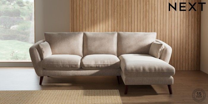 6.12.1 Buy Orlo Relaxed Sit Medium Sofa Chaise - Right Hand Cotswold Chenille Light Natural Retro Tapered - Dark Brown from the Next UK online shop Click here to use our accessible website