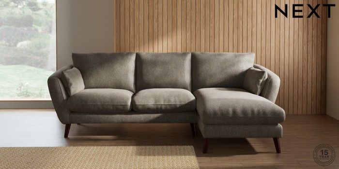 7.0.3 Buy Orlo Relaxed Sit Medium Sofa Chaise - Right Hand Cotswold Chenille Mid Mink Brown Retro Tapered - Dark Brown from the Next UK online shop Click here to use our accessible website