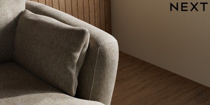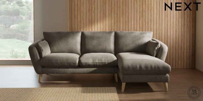 7.0.3 Buy Orlo Relaxed Sit Medium Sofa Chaise - Right Hand Cotswold Chenille Mid Mink Brown Retro Tapered - Light from the Next UK online shop Click here to use our accessible website