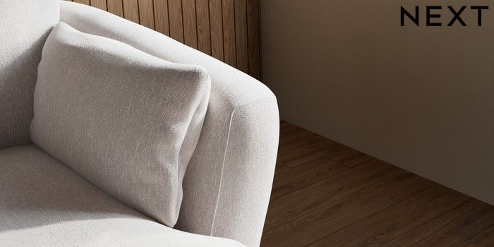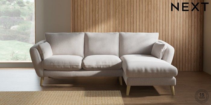 6.12.1 Buy Orlo Relaxed Sit Medium Sofa Chaise - Right Hand Cotswold Chenille Oyster Retro Tapered - Light from the Next UK online shop Click here to use our accessible website