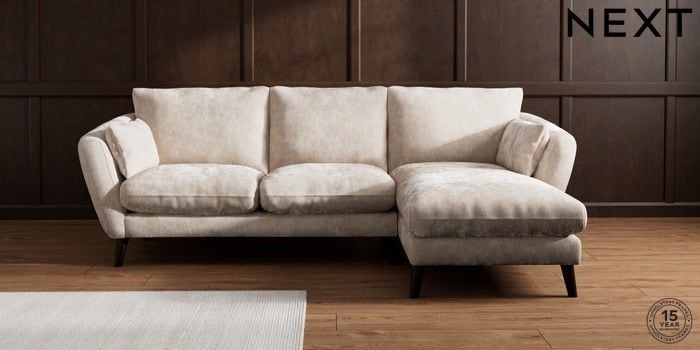 6.12.1 Buy Orlo Relaxed Sit Medium Sofa Chaise - Right Hand Distressed Velour Mid Natural Retro Tapered - Dark from the Next UK online shop Click here to use our accessible website