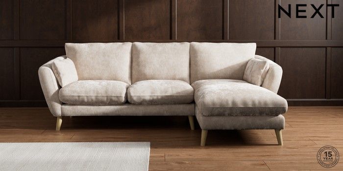 6.12.1 Buy Orlo Relaxed Sit Medium Sofa Chaise - Right Hand Distressed Velour Mid Natural Retro Tapered - Light from the Next UK online shop Click here to use our accessible website