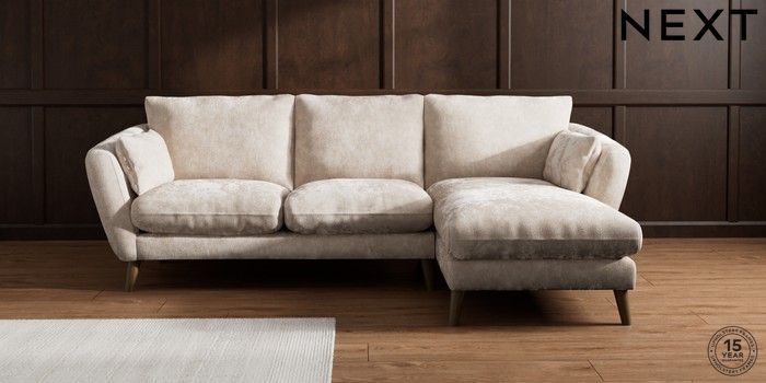 6.12.1 Buy Orlo Relaxed Sit Medium Sofa Chaise - Right Hand Distressed Velour Mid Natural Retro Tapered - Mid from the Next UK online shop Click here to use our accessible website