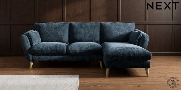 6.12.1 Buy Orlo Relaxed Sit Medium Sofa Chaise - Right Hand Distressed Velour Midnight Blue Retro Tapered - Light from the Next UK online shop Click here to use our accessible website