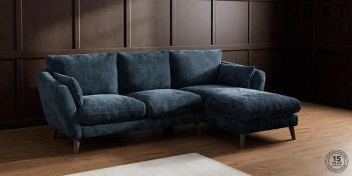 6.12.1 Buy Orlo Relaxed Sit Medium Sofa Chaise - Right Hand Distressed Velour Midnight Blue Retro Tapered - Mid from the Next UK online shop Click here to use our accessible website