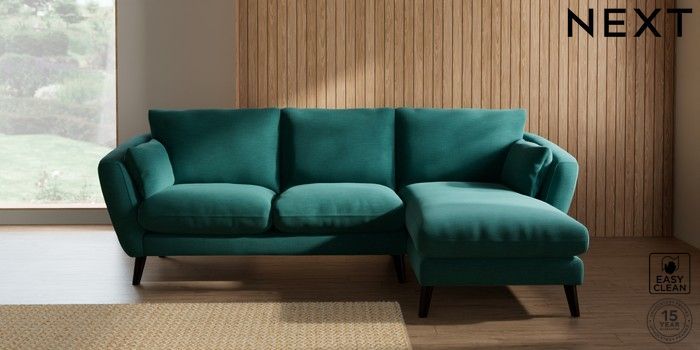 6.12.1 Buy Orlo Relaxed Sit Medium Sofa Chaise - Right Hand Fine Chenille Easy Clean Dark Juniper Green Retro Tapered - Dark from the Next UK online shop Click here to use our accessible website