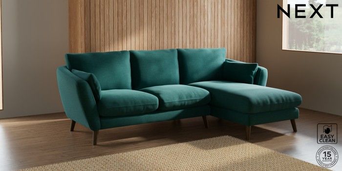 6.12.1 Buy Orlo Relaxed Sit Medium Sofa Chaise - Right Hand Fine Chenille Easy Clean Dark Juniper Green Retro Tapered - Mid from the Next UK online shop Click here to use our accessible website