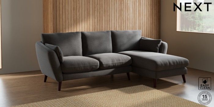 6.12.1 Buy Orlo Relaxed Sit Medium Sofa Chaise - Right Hand Fine Chenille Easy Clean Dark Smoke Grey Retro Tapered - Dark Brown from the Next UK online shop Click here to use our accessible website