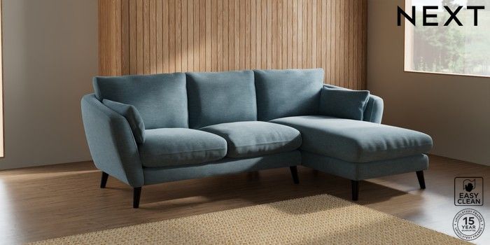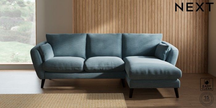 6.12.1 Buy Orlo Relaxed Sit Medium Sofa Chaise - Right Hand Fine Chenille Easy Clean Mid Blue Retro Tapered - Dark from the Next UK online shop Click here to use our accessible website