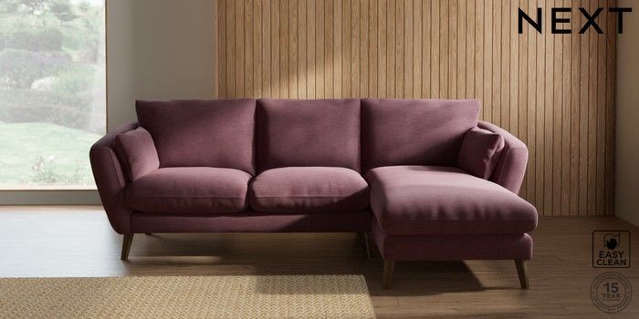 6.12.1 Buy Orlo Relaxed Sit Medium Sofa Chaise - Right Hand Fine Chenille Easy Clean Mid Mulberry Purple Retro Tapered - Mid from the Next UK online shop Click here to use our accessible website