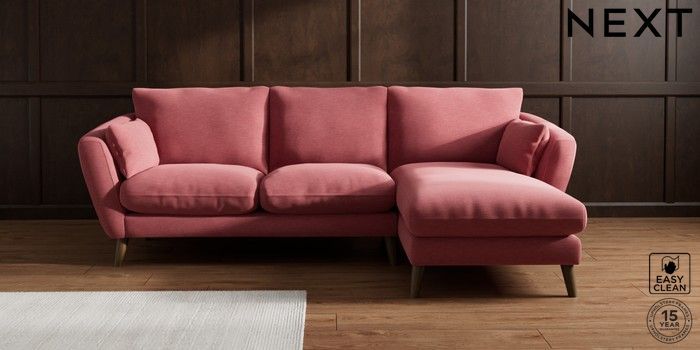 6.12.1 Buy Orlo Relaxed Sit Medium Sofa Chaise - Right Hand Fine Chenille Easy Clean Mid Pink Retro Tapered - Mid from the Next UK online shop Click here to use our accessible website