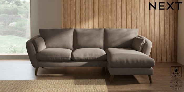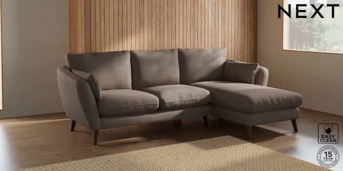 6.12.1 Buy Orlo Relaxed Sit Medium Sofa Chaise - Right Hand Fine Chenille Easy Clean Mid Taupe Brown Retro Tapered - Mid from the Next UK online shop Click here to use our accessible website