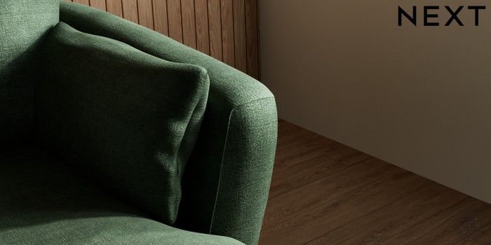 6.12.1 Buy Orlo Relaxed Sit Medium Sofa Chaise - Right Hand Luxe Chenille Dark Green Retro Tapered - Mid from the Next UK online shop Click here to use our accessible website