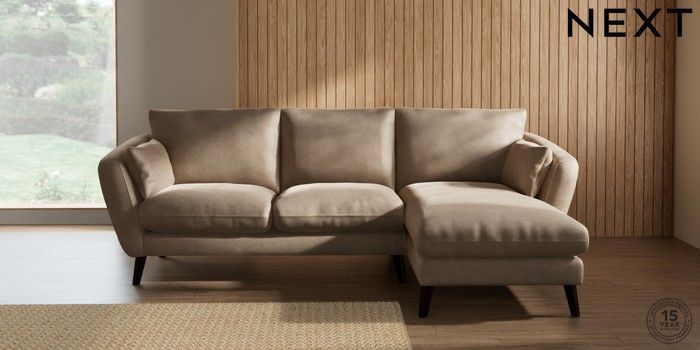 6.12.1 Buy Orlo Relaxed Sit Medium Sofa Chaise - Right Hand Luxe Chenille Mid Camel Beige Retro Tapered - Dark from the Next UK online shop Click here to use our accessible website