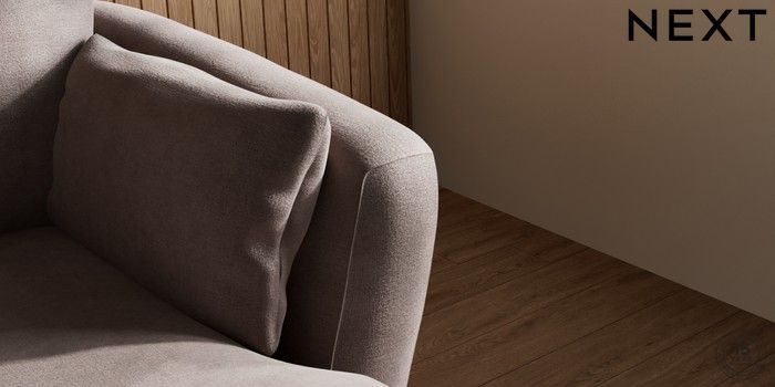 7.0.3 Buy Orlo Relaxed Sit Medium Sofa Chaise - Right Hand Luxe Chenille Mink Brown Retro Tapered - Dark from the Next UK online shop Click here to use our accessible website