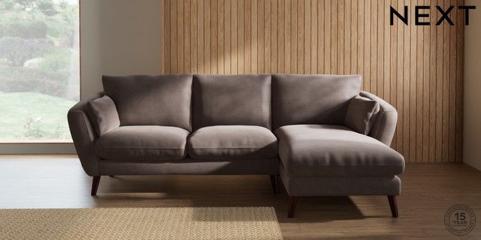 7.0.3 Buy Orlo Relaxed Sit Medium Sofa Chaise - Right Hand Luxe Chenille Mink Brown Retro Tapered - Dark Brown from the Next UK online shop Click here to use our accessible website