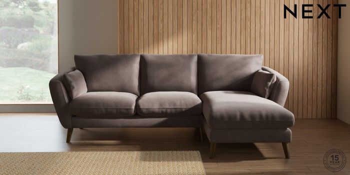 7.0.3 Buy Orlo Relaxed Sit Medium Sofa Chaise - Right Hand Luxe Chenille Mink Brown Retro Tapered - Mid from the Next UK online shop Click here to use our accessible website