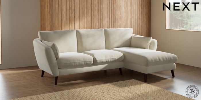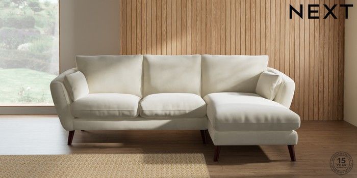 7.0.3 Buy Orlo Relaxed Sit Medium Sofa Chaise - Right Hand Luxe Chenille Oyster Retro Tapered - Dark Brown from the Next UK online shop Click here to use our accessible website