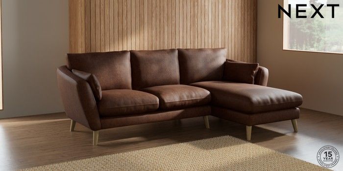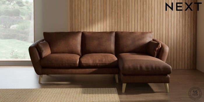 6.12.1 Buy Orlo Relaxed Sit Medium Sofa Chaise - Right Hand Monza Faux Leather Easy Clean Chestnut Brown Retro Tapered - Light from the Next UK online shop Click here to use our accessible website