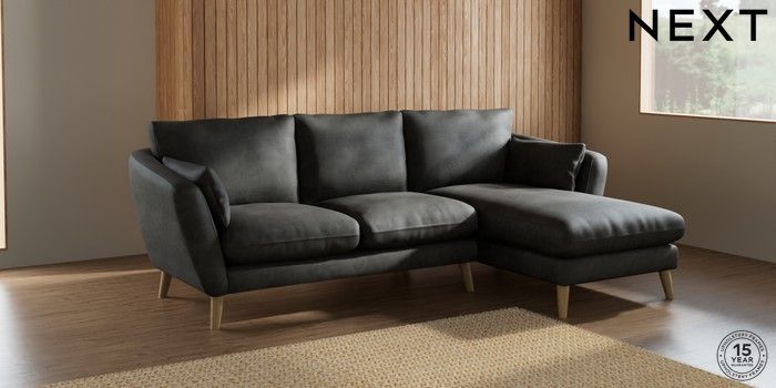 6.12.1 Buy Orlo Relaxed Sit Medium Sofa Chaise - Right Hand Monza Faux Leather Easy Clean Dark Grey Retro Tapered - Light from the Next UK online shop Click here to use our accessible website