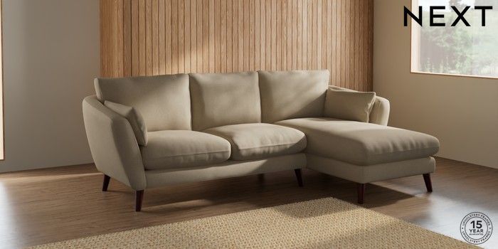 6.12.1 Buy Orlo Relaxed Sit Medium Sofa Chaise - Right Hand Natural Mix Light Natural Retro Tapered - Dark Brown from the Next UK online shop Click here to use our accessible website
