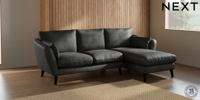 6.12.1 Buy Orlo Relaxed Sit Medium Sofa Chaise - Right Hand Plush Chenille Dark Grey Retro Tapered - Dark from the Next UK online shop Click here to use our accessible website