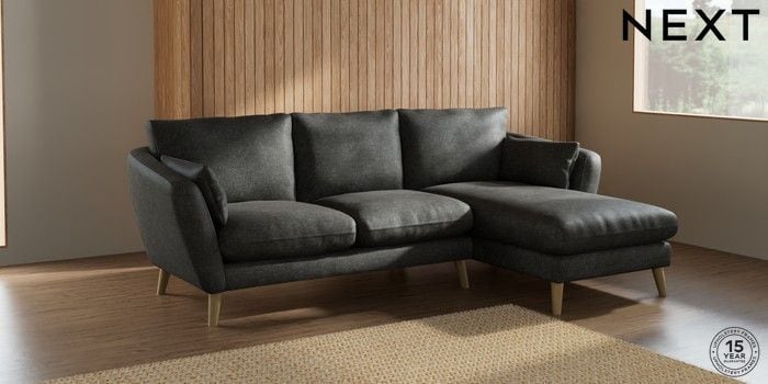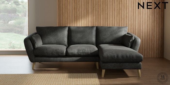 6.12.1 Buy Orlo Relaxed Sit Medium Sofa Chaise - Right Hand Plush Chenille Dark Grey Retro Tapered - Light from the Next UK online shop Click here to use our accessible website
