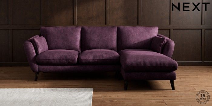 6.12.1 Buy Orlo Relaxed Sit Medium Sofa Chaise - Right Hand Plush Chenille Dark Plum Purple Retro Tapered - Dark from the Next UK online shop Click here to use our accessible website