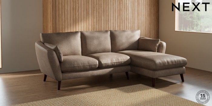 6.12.1 Buy Orlo Relaxed Sit Medium Sofa Chaise - Right Hand Plush Chenille Mid Natural Retro Tapered - Dark Brown from the Next UK online shop Click here to use our accessible website