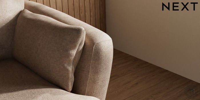 6.12.1 Buy Orlo Relaxed Sit Medium Sofa Chaise - Right Hand Plush Chenille Mid Natural Retro Tapered - Light from the Next UK online shop Click here to use our accessible website