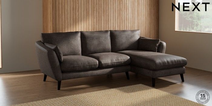 6.12.1 Buy Orlo Relaxed Sit Medium Sofa Chaise - Right Hand Plush Chenille Mink Brown Retro Tapered - Dark from the Next UK online shop Click here to use our accessible website