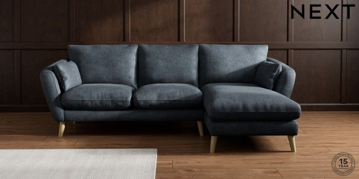 6.12.1 Buy Orlo Relaxed Sit Medium Sofa Chaise - Right Hand Plush Chenille Slate Blue Retro Tapered - Light from the Next UK online shop Click here to use our accessible website