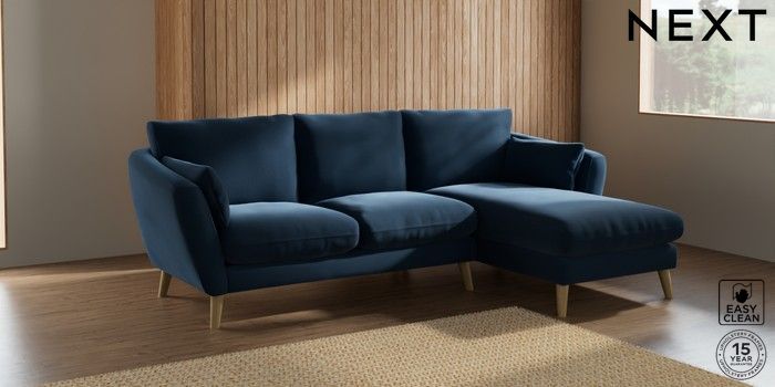 6.12.1 Buy Orlo Relaxed Sit Medium Sofa Chaise - Right Hand Plush Velvet Easy Clean Airforce Blue Retro Tapered - Light from the Next UK online shop Click here to use our accessible website