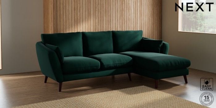 6.12.1 Buy Orlo Relaxed Sit Medium Sofa Chaise - Right Hand Plush Velvet Easy Clean Bottle Green Retro Tapered - Dark Brown from the Next UK online shop Click here to use our accessible website
